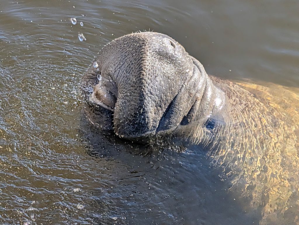 Noticing the whiskers on the manatee.